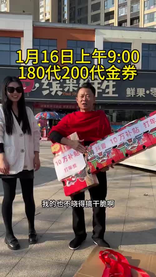 1月16号上午9:00直播,抖音十万补贴打年货,闹钟定好哦,这次补贴超划算!#十万补贴 #打年货 #划算 #直播间 #缤果鲜生