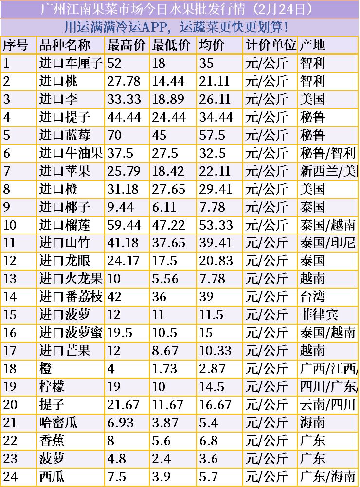 今日广州江南果菜市场水果批发行情播报。26年2月24日广州江南果菜市场水果价格一览,新年新气象!火龙果、柑橘、金桔、苹果、橙子等应季热门水果价格早知道。点点关注不迷路,每日轮流播报各大批市水果行情!还想了解哪些水果价格,评论区告诉我,我要上热门! #水果自由 #批发市场 #爱吃水果的宝宝 #新鲜应季水果 #抖音助农