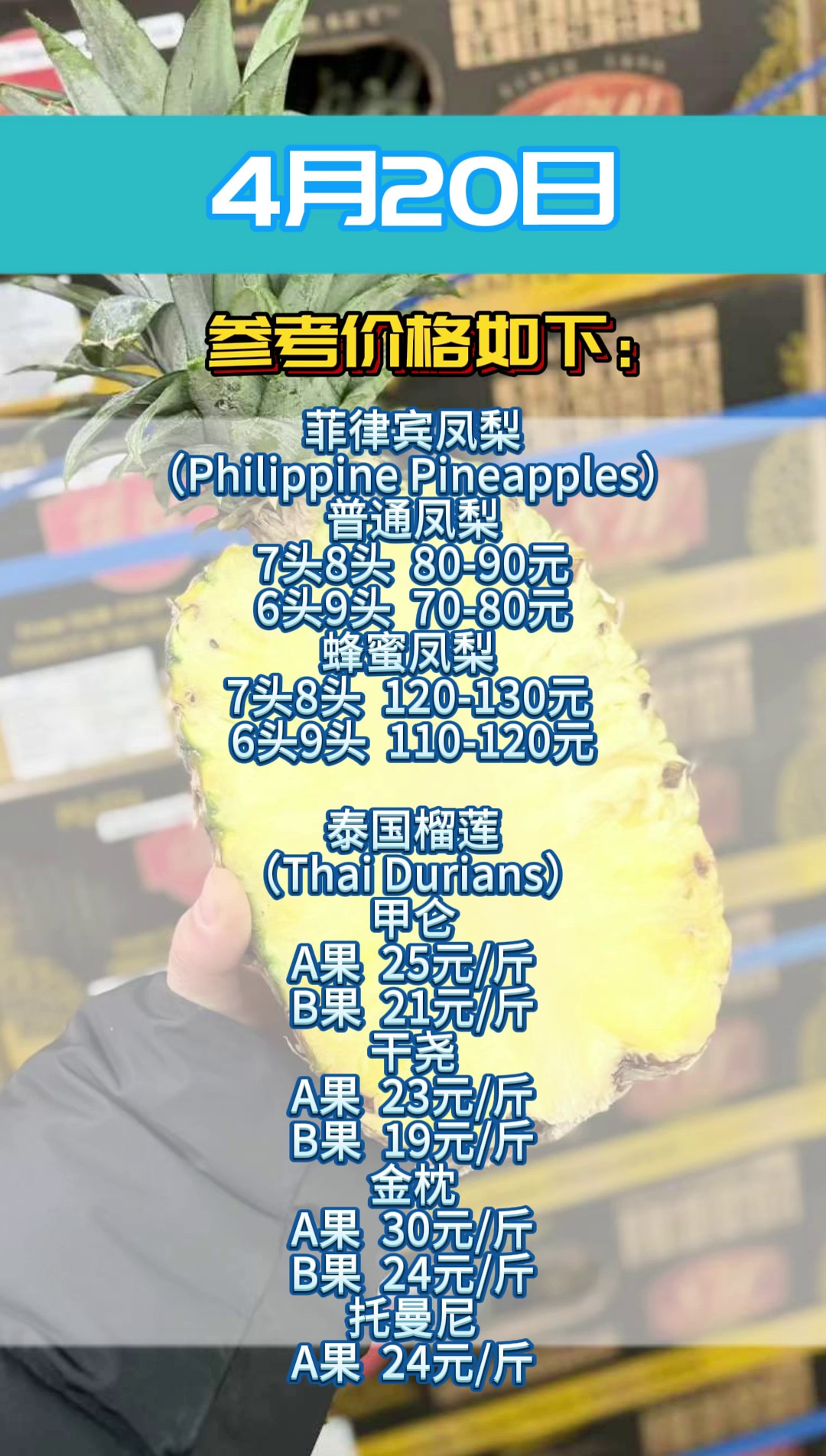 4月20日上海辉展果蔬批发市场行情 |南非苹果、智利提子、国产蓝莓、泰国榴莲等#上海辉展果蔬市场#每日行情#水果价格